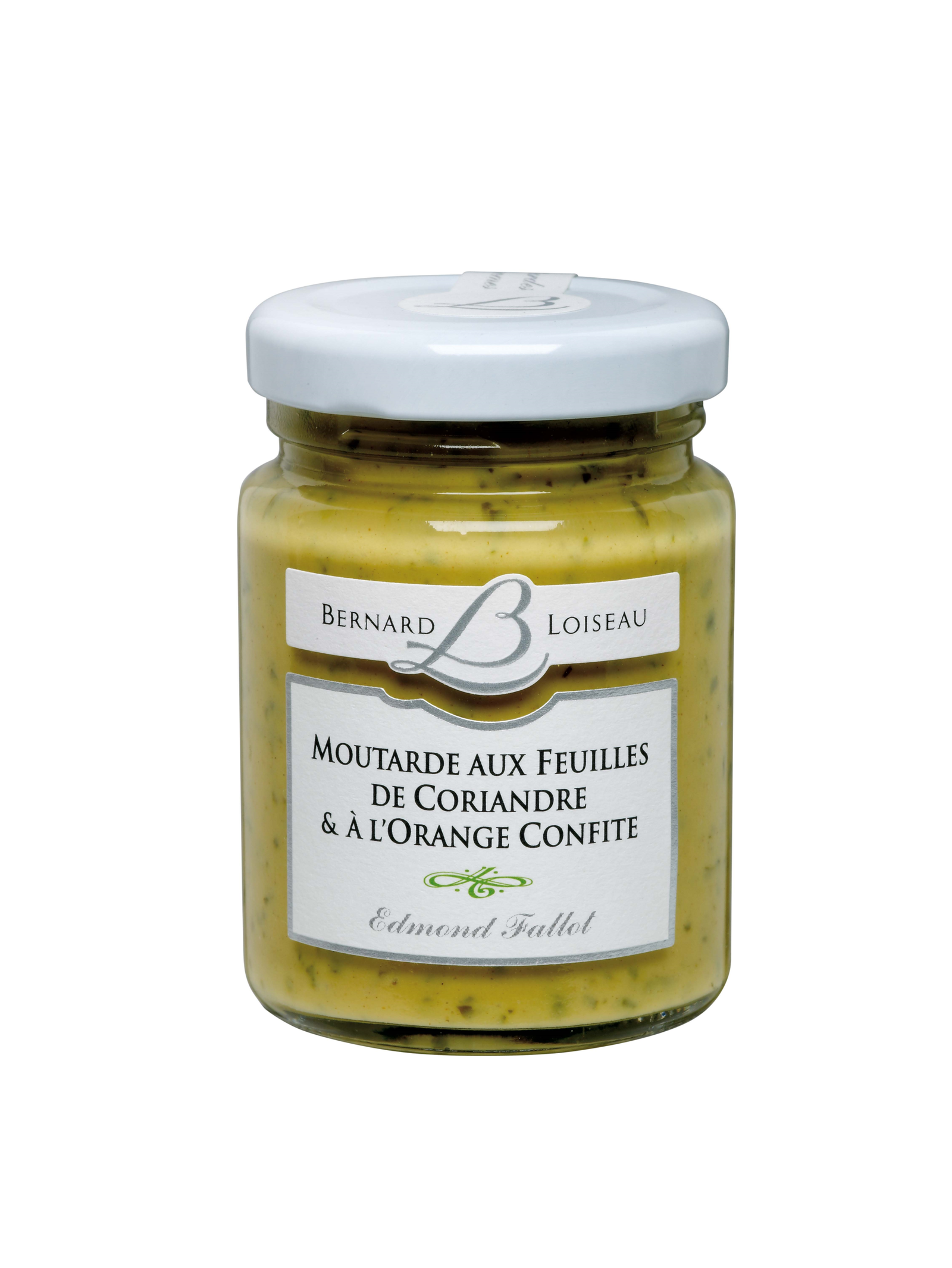 Moutarde feuilles coriandre et orange confite, B. Loiseau, bocal 10CL – Fallot